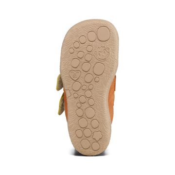 Affenzahnin ensijalkine, Prewalker Leather Walky, on kevyt ja joustava jalkine kävelyä harjoittelevalle lapselle. Kahdella säädettävällä tarralla nämä on helppo saada istumaan hyvin pieniin jalkoihin. Näissä paljasjalkakengissä on takana eläinaiheiset kangasmerkit, joiden avulla lapsen on helppo opetella pukemaan kengät oikeisiin jalkoihin.