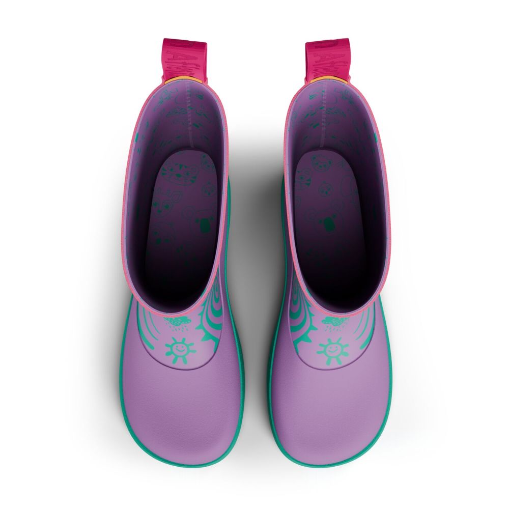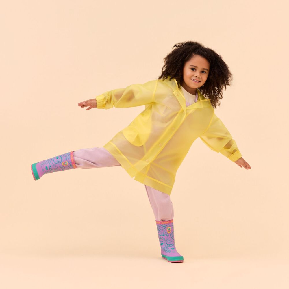 Kevyin jaloin sateessa! Uusi Plashy tarjoaa paljasjalkamaisen tuntuman joustavan pohjansa ansiosta ja ilahduttaa samalla pirteällä sääaiheisella kuvioinnilla, kirkkailla väreillä ja heijastavilla yksityiskohdilla.