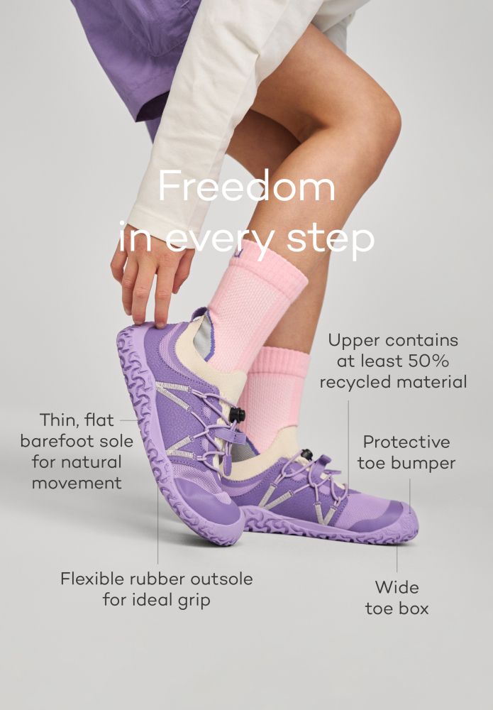 Paljasjalkakengät auttavat säilyttämään jalan luonnollisen asennon ja askelluksen.