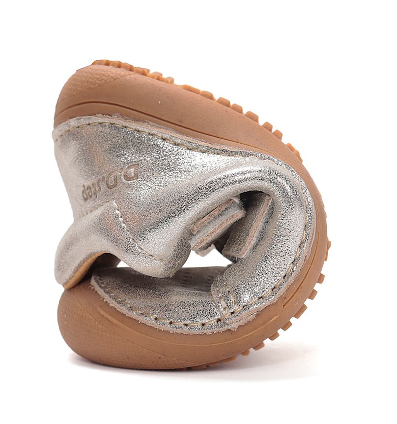 Tyylikkäät paljasjalkakengät D.D.Stepiltä. Nämä nahkaiset ja nahkavuoriset kengät ovat pehmeät ja joustavat ja ulkopohja on kauttaaltaan tasainen, 0-korko. Malli on tilava ja jalkojen muotoa mukaileva. Helppo laittaa jalkaan kahden säädettävän tarran ansiosta. Kuminen ulkopohja on todella taipuisa ja pehmeä. Pohja on ommeltu kenkään ja siksi liimaa on näissä käytetty hyvin minimaalisesti. Irrotettavat nahkapohjalliset.