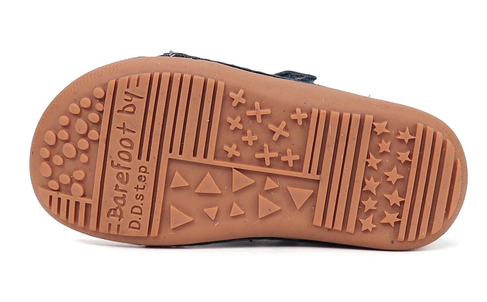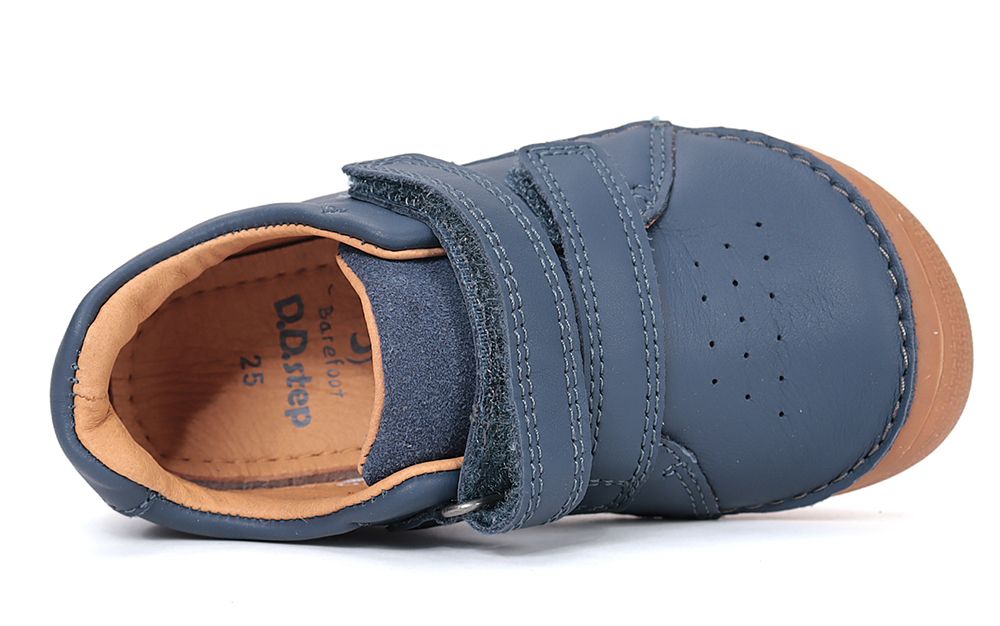 Tyylikkäät paljasjalkakengät D.D.Stepiltä. Nämä nahkaiset ja nahkavuoriset kengät ovat pehmeät ja joustavat ja ulkopohja on kauttaaltaan tasainen, 0-korko. Malli on tilava ja jalkojen muotoa mukaileva. Helppo laittaa jalkaan kahden säädettävän tarran ansiosta. Kuminen ulkopohja on todella taipuisa ja pehmeä. Pohja on ommeltu kenkään ja siksi liimaa on näissä käytetty hyvin minimaalisesti. Irrotettavat nahkapohjalliset.