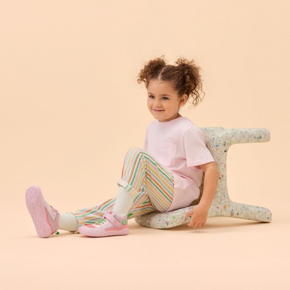 Low cut Vegan Cheerly on valmistettu kierrätetystä, bluesign -sertifioidusta mesh-materiaalsta. Hengittävä rakenne tekee kengästä täydellisen lämpimiin päiviin. Kevyt ja sporttinen malli on varustettu erittäin joustavalla, ihan uudelle ulkopohjalla. Nämä tukevat lapsen luonnollista liikkumista.