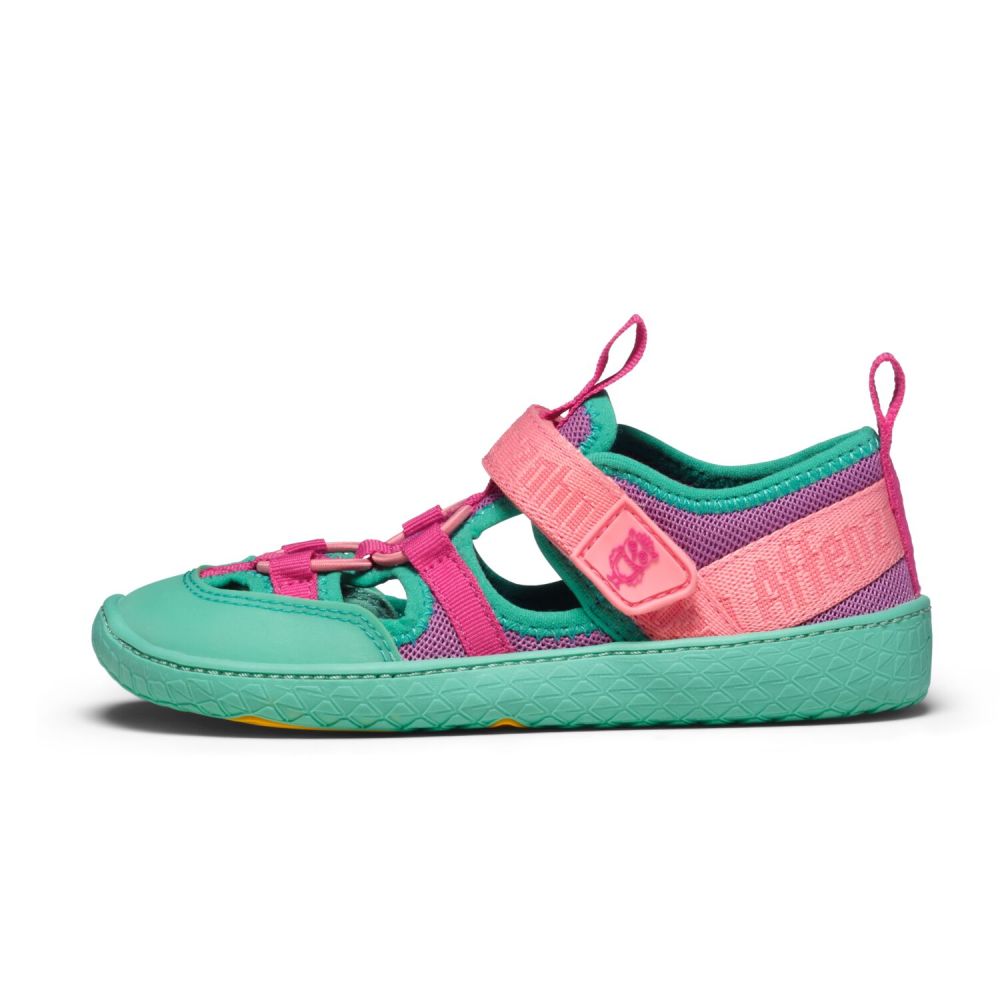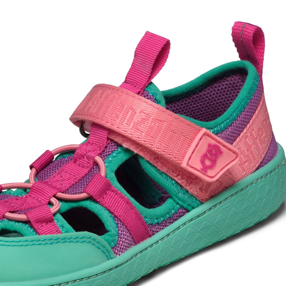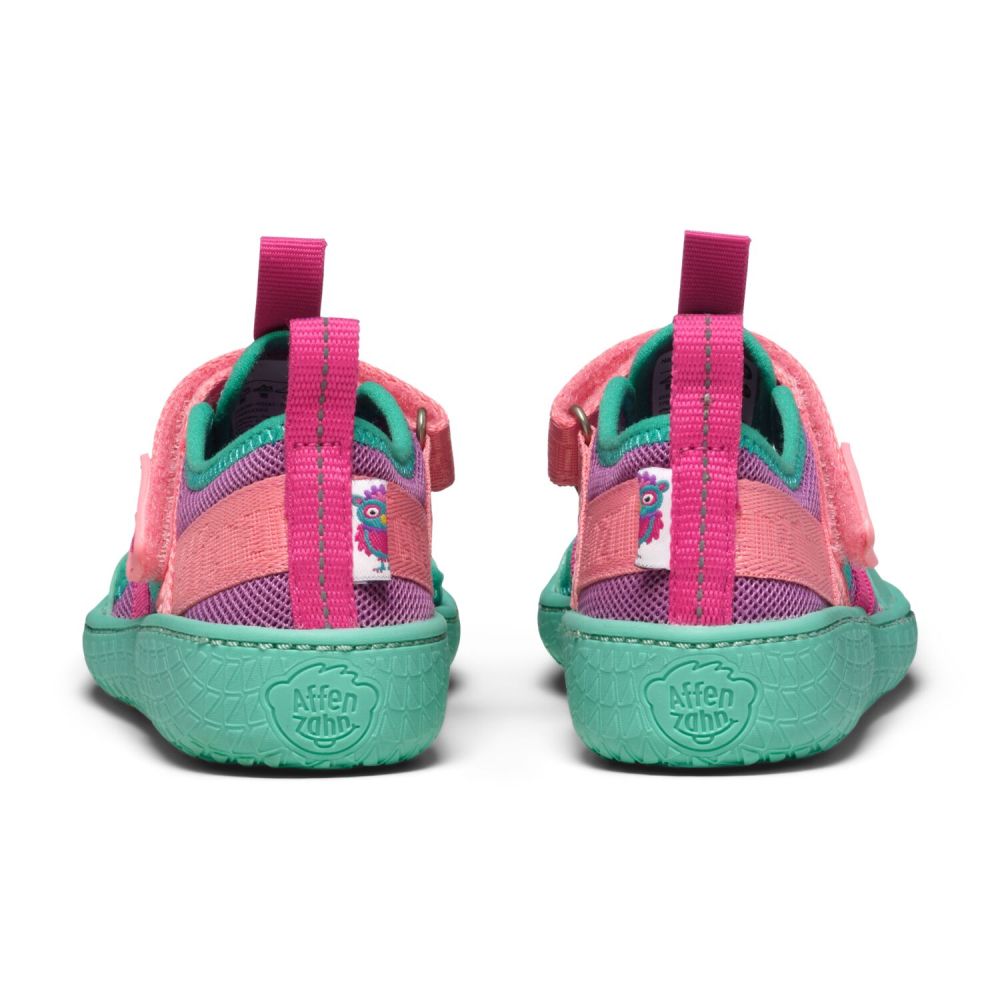 Affenzahn Sandal Vegan Roughy on uusi paljasjalkasandaali, joka tarjoaa lisätukea varvassuojuksellaan ja erityisellä muodollaan, mutta antaa kuitenkin jalan hengittää lämpimällä säällä. Kengät on helppo pukea ja riisua tarranauhalla, ja sopii täydellisesti jalkaan joustavien nauhojen ansiosta . Ihanan kevyet ja joustavat sandaalit ihan jokaiseen kesäpäivään!
