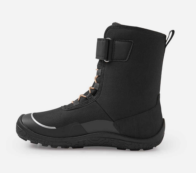 Lämpimät vedenpitävät lasten talvikengät joissa Reiman oma paljasjalkalesti. Taipuisa pohja ja kohokuviot antavat hyvän pidon.