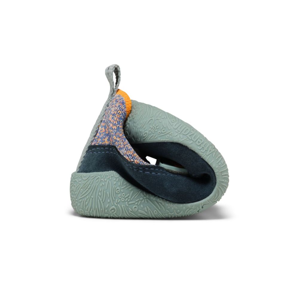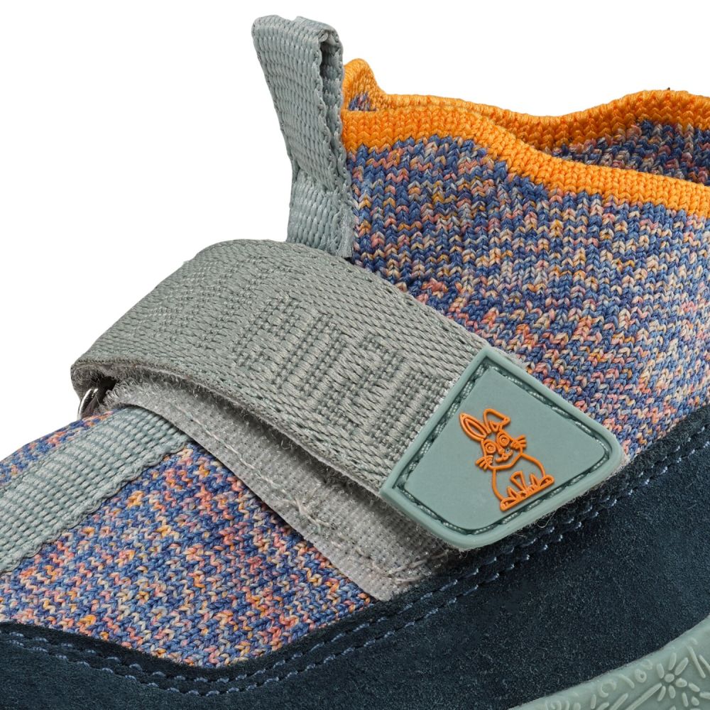 Näiden korkeampivartisten paljasjalkakenkien varsi suojaa myös nilkkaa. Materiaali on mahtavan joustavaa ja pehmeää, mutta tiivistä ja kestävää neulosta. Ulkopohja on kuminen ja  todella joustava, pohja nousee myös ylös suojaamaan kärkeä. Varvastila optimaalinen. Helpot laittaa jalkaan ja pieni säätö yhdellä tarralla. Pienen lapsen paljasjalkakengissä on takana eläinaiheiset kangasmerkit, joiden avulla lapsi voi opetella pukemaan kengät oikeisiin jalkoihin. Nämä erittäin joustavat, hyvin hengittävät ja pehmeät jalkineet ovat mainiot pikkulapsille kesäkauden ulkoiluun, niin puistoon kuin pihalle!