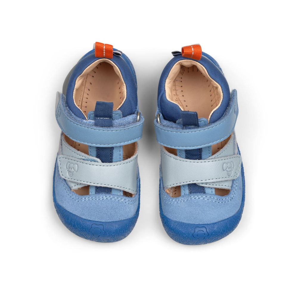 Affenzahnin mahtavan pehmeät Freely kesäkengät/sandaalit pikkulapsille! Näiden korkeampivartisten paljasjalkakenkien varsi suojaa myös nilkkaa. Materiaali on mahtavan  pehmeää nahkaa. Ulkopohja on kuminen ja  todella joustava, pohja nousee myös ylös suojaamaan kärkeä. Varvastila optimaalinen. Helpot laittaa jalkaan ja hyvät säädöt kahdella tarralla. Pienen lapsen paljasjalkakengissä on takana eläinaiheiset kangasmerkit, joiden avulla lapsi voi opetella pukemaan kengät oikeisiin jalkoihin. Nämä erittäin joustavat, hyvin hengittävät ja pehmeät jalkineet ovat mainiot pikkulapsille kesäkauden ulkoiluun, niin puistoon kuin pihalle!