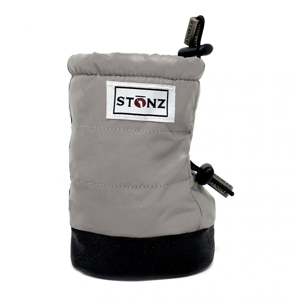 Booties-jalkineet on valmistettu vettähylkivästä ja tuulenpitävästä 600D nylonkankaasta ja niissä on pehmoinen fleecevuori. Irroitettava Liners-lisävuori (myydään erikseen) mahdollistaa käytön myös kovemmilla pakkasilla. Stonz Booties sopii niin välikausi- kuin talvijalkineeksi.